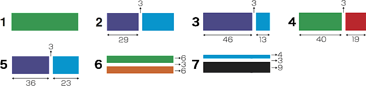 印面を2色以上で作る事も出来ます。分割方法7タイプ、インキ色は6色の中から、お好きな組み合わせで作れます。